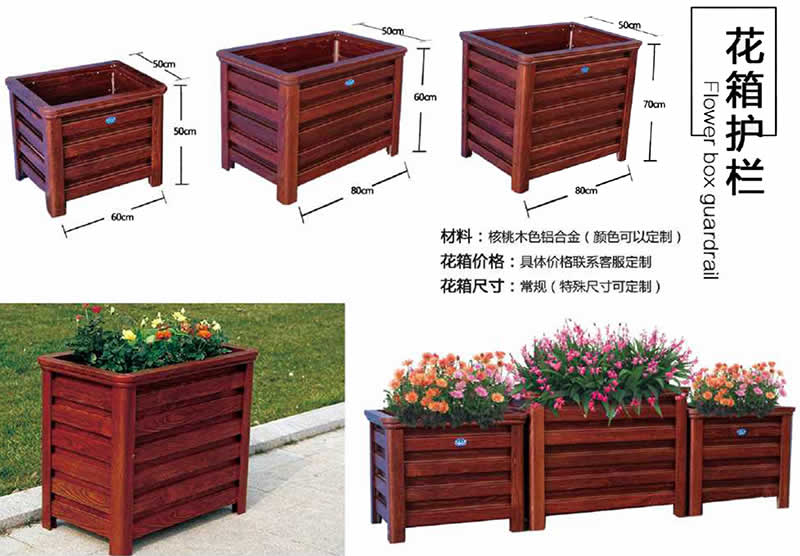 鋁合金花箱護欄: 可用于道路綠化、道路中央隔離、道路交叉口,機非隔離、非機動車道和人行道隔離。還可以用在小區(qū)、公園綠化、廣場綠化、入口倆側綠化。 使用場景:公路道路、商業(yè)街、小區(qū)、公園、火車站、汽車站隔離作用。 家用植物:可用于家庭常用蔬菜種植。如:蔥、蒜、辣椒,生菜、雞毛菜等。 使用場所:陽臺、廚房、庭院等。 鋁合金花箱采用木紋鋁合金材料,比任何材料輕,更防腐,不發(fā)霉生銹,戶外使用更長久,而且在能源上可以重復利用的金屬材料。外觀上更具有很高的觀賞性,能顯示出格調與品位,并從設計、制造、安裝、檢驗及售后服務上得到客戶的首肯與喜愛。 木紋鋁合金高低組合戶外花箱,采用純正木紋鋁合金,回歸自然,采用優(yōu)質進口鋁材,經(jīng)過熱轉印技術,除蟲,防腐,定型等各種處理加工定型,再用進口高分子漆噴涂,做到戶外持久耐用,不易變形,破裂,腐爛或蟲蛀,正常使用可達15-20年。戶外風吹雨打環(huán)境使用更長久。 根據(jù)市民的切身需要,匯聚家具和花箱的理念,結合鋁合金材料的防腐、耐潮、抗老化,造型美觀,壽命長、且可回收利用,公司設計一款桌椅花箱,充分體現(xiàn)了環(huán)保理念,在外觀上擁有合理的結構,流暢的線條,堅固耐用,高雅美觀,.可稱經(jīng)典之作。 |